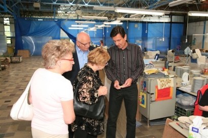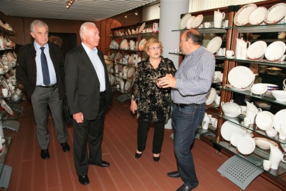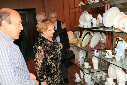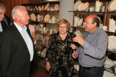 Věra Čáslavská spolu s dalšími členy výboru navštívila provoz porcelánky v Nové Roli a poté se přesunuli do manufaktury v Lesově.