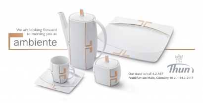 Ve dnech 10. - 14.2.2017 se ve Frankturtu nad Mohanem konal mezinárodní veletrh spotřebního zboží Ambiente. Společnost Thun již tradičně vystavovala své výrobky v hale 4.2. Mezi novinkami tohoto roku nechyběly nové dekory na tvarech EYE či LOOS, ale také na klasických stálicích BERNADOTTE nebo CHRISTINE.