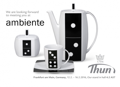 Prestižní mezinárodní veletrh Ambiente 2016 ve Frankfurtu nad Mohanem, který se konal ve dnech 12. - 16.2.2016, byl pro Thun 1794 a.s. příležitostí k prezentaci nového kompletního porcelánového souboru EYE. Tento počin rozšířil stávající tvarovou škálu celé kolekce nabídky od servisu Bernadotte, který i přes svoji více než stoletou historii neztrácí nic ze své popularity a uzavírá se přesahem do současnosti ryze soudobým kreativním souborem.