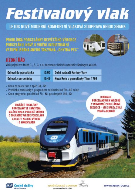 Singrovku letos nahradí s ohledem na výluku a kapacitu moderní a komfortnější vlaková souprava Regio Shark 844. To bude znamenat nižší jízdné pro návštěvníky, ale také zvýšení kapacity festivalového vlaku, který pojede „za holkami z porcelánu“ do prostředí porcelánky, jejíž interiéry připomínají interiéry známé z filmu „Holky z porcelánu“.