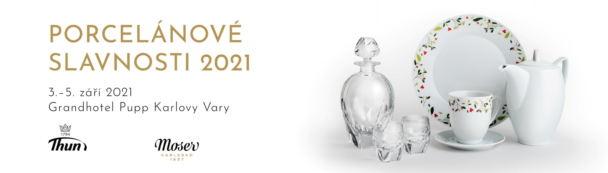 První zářijový víkend (3. - 5.9.2021) pro Vás již tradičně chystáme Porcelánové slavnosti. V prostorách karlovarského Grandhotelu Pupp bude instalována výstava Prostřené stoly, kde si lze prohlédnout současnou porcelánovou produkci porcelánky Thun 1794 vhodně doplněnou kolekcemi nápojového skla karlovarské sklárny Moser.