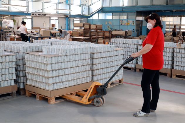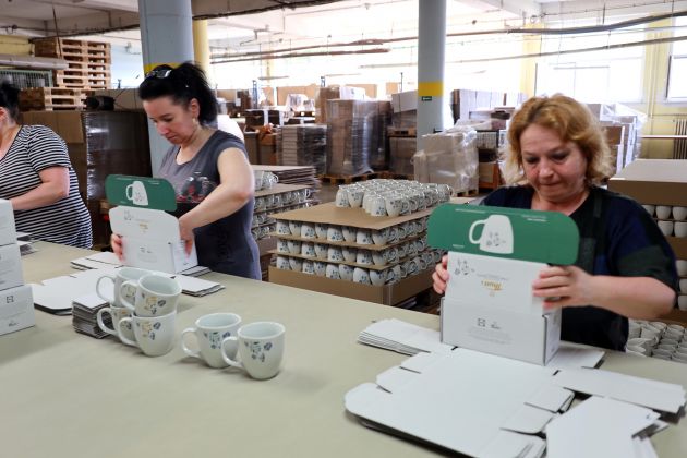 Poslední kusy byly včera zabaleny na paletu a dnes odvezeny. Již podruhé jsme pro obchodní řetězec LIDL vyráběli porcelánové sady, tentokrát šálky s podšálky a hrnky.