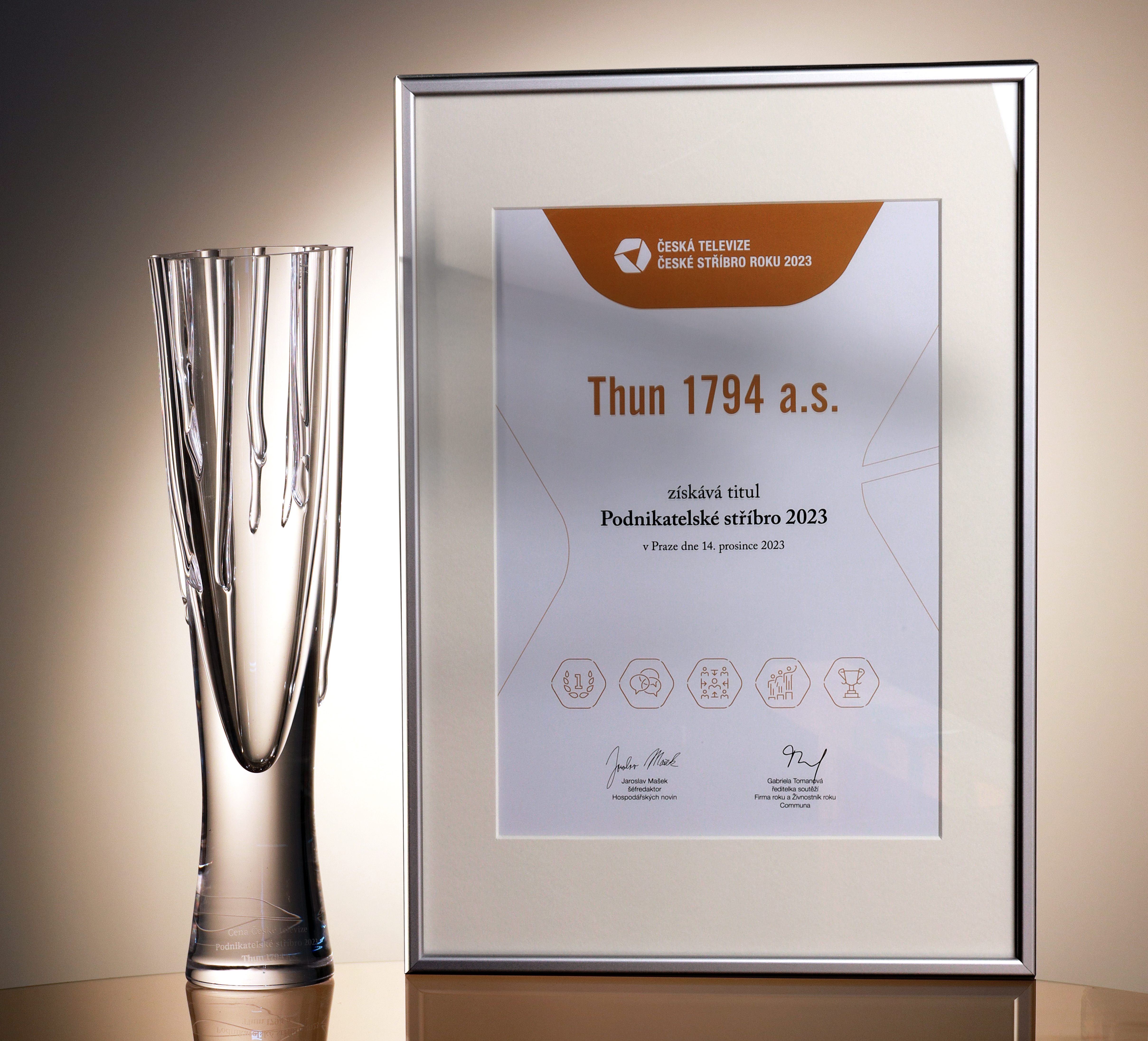 Společnost Thun 1794 získala titul Podnikatelské stříbro 2023 v rámci celorepublikové podnikatelské soutěže Firma roku 2023 a Živnostník roku 2023.